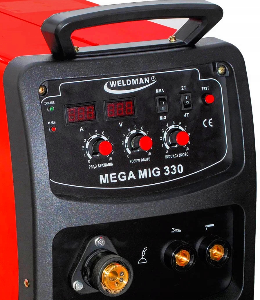 WELDMAN MEGA MIG 330 4x4 posiada czytelny i łatwy w obsłudze panel funkcyjny, który posiada m.in.: