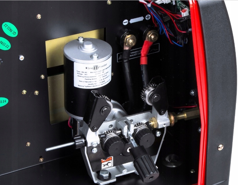 Spawarka została wyposażona w solidny podajnik drutu, który gwarantuje stabilność i ciągłość pracy urządzenia.