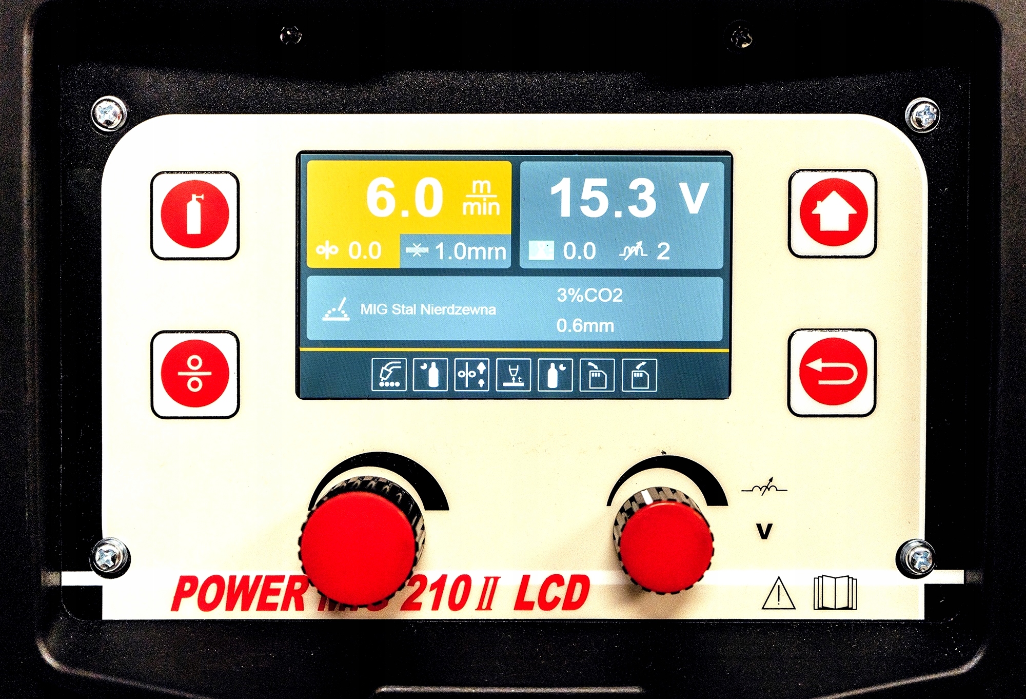 WELDMAN POWER MIG 210 LCD posiada czytelny i łatwy w obsłudze panel funkcyjny, który posiada m.in.: