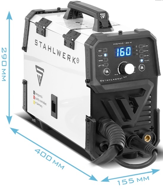 STAHLWERK MIG/MAG 160M jest inwertorowym półautomatem spawalniczym przeznaczonym do spawania łukowego metodą: