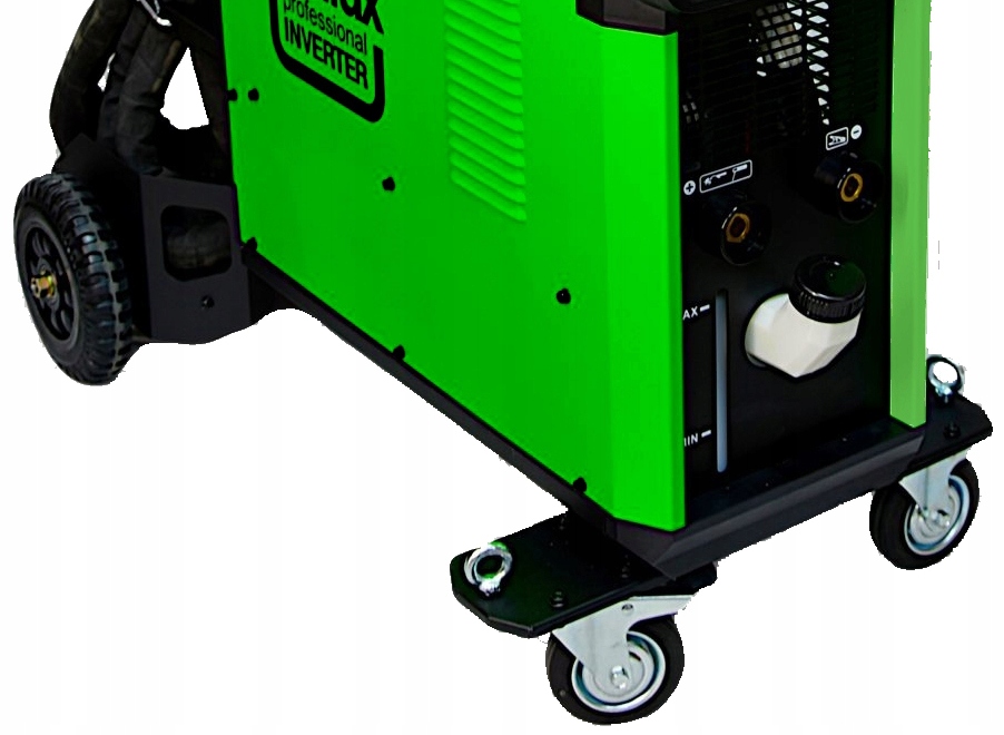 ✔️ PODWOZIE JEZDNE - urządzenie wyposażono podwozie jezdne, które gwarantują dużą mobilność i możliwość przemieszczania spawarki w łatwy sposób. Podwozie pozwala też na zamontowanie butli z gazem, bez konieczności inwestowania w wózek spawalniczy. Przednie koła zostały wyposażone z dodatkowe hamulce nożne - zapewniające dodatkowe bezpieczeństwo podczas eksploatacji.