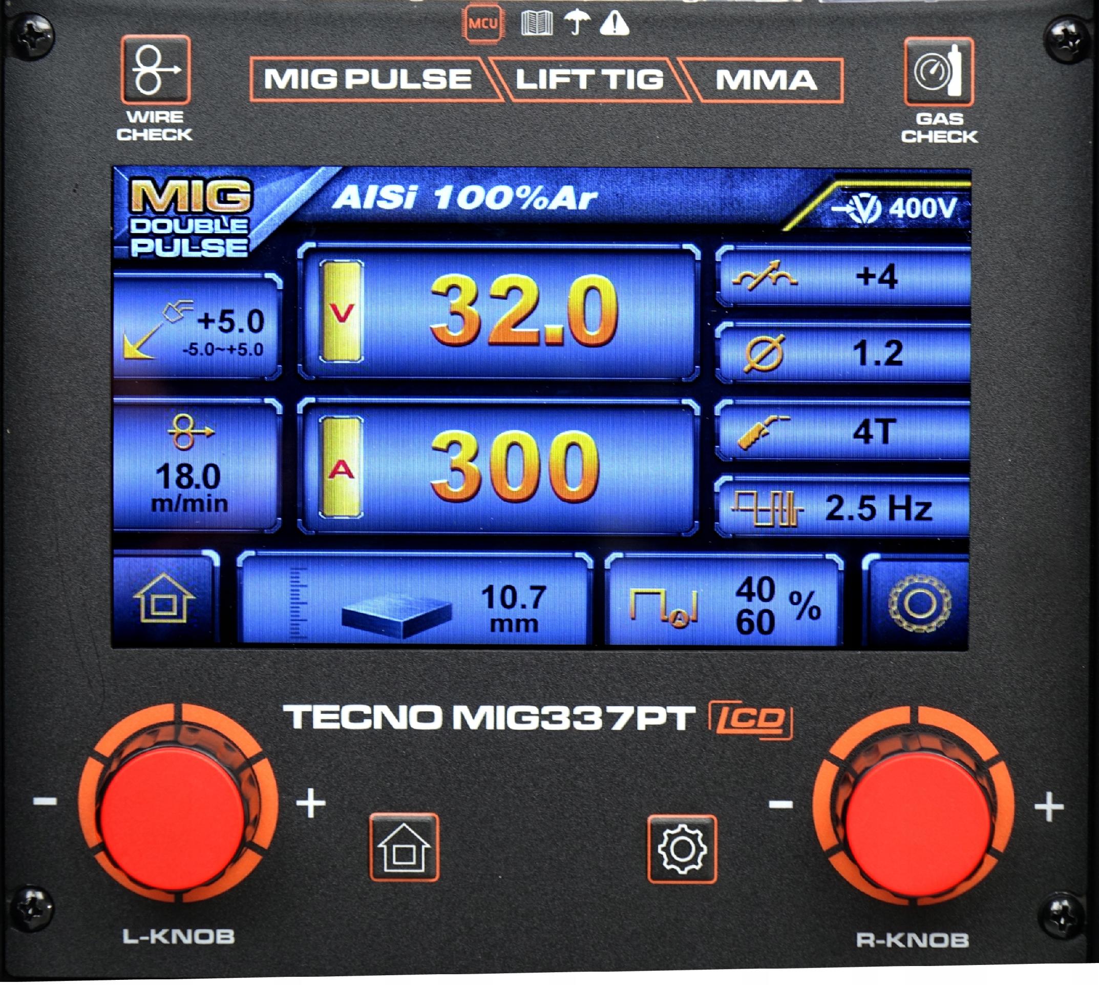 IDEAL TECNO MIG 337 PULSE SYNERGIC LCD posiada czytelny i łatwy w obsłudze panel funkcyjny, który posiada m.in.: