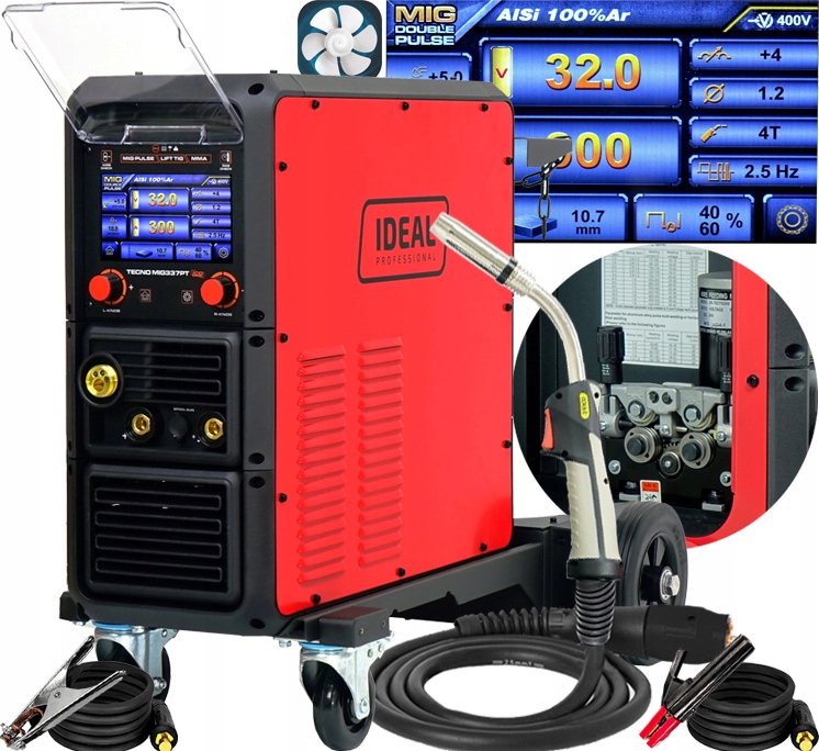 SPAWARKA INWERTOROWA PÓŁAUTOMAT IDEAL TECNO MIG 337 PULSE SYNERGIC LCD 4X4