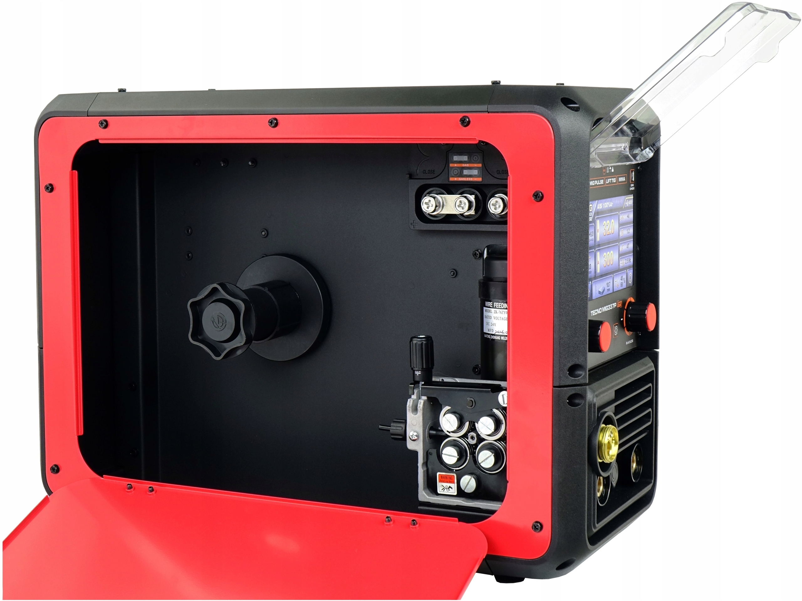 Spawarka została wyposażona w solidny podajnik drutu, który gwarantuje stabilność i ciągłość pracy urządzenia.