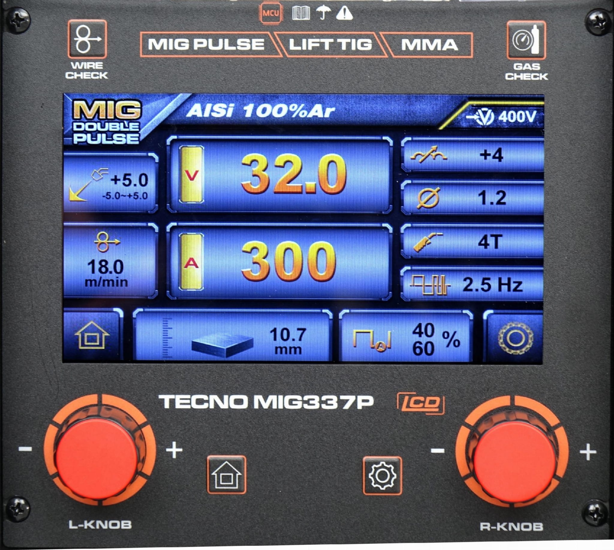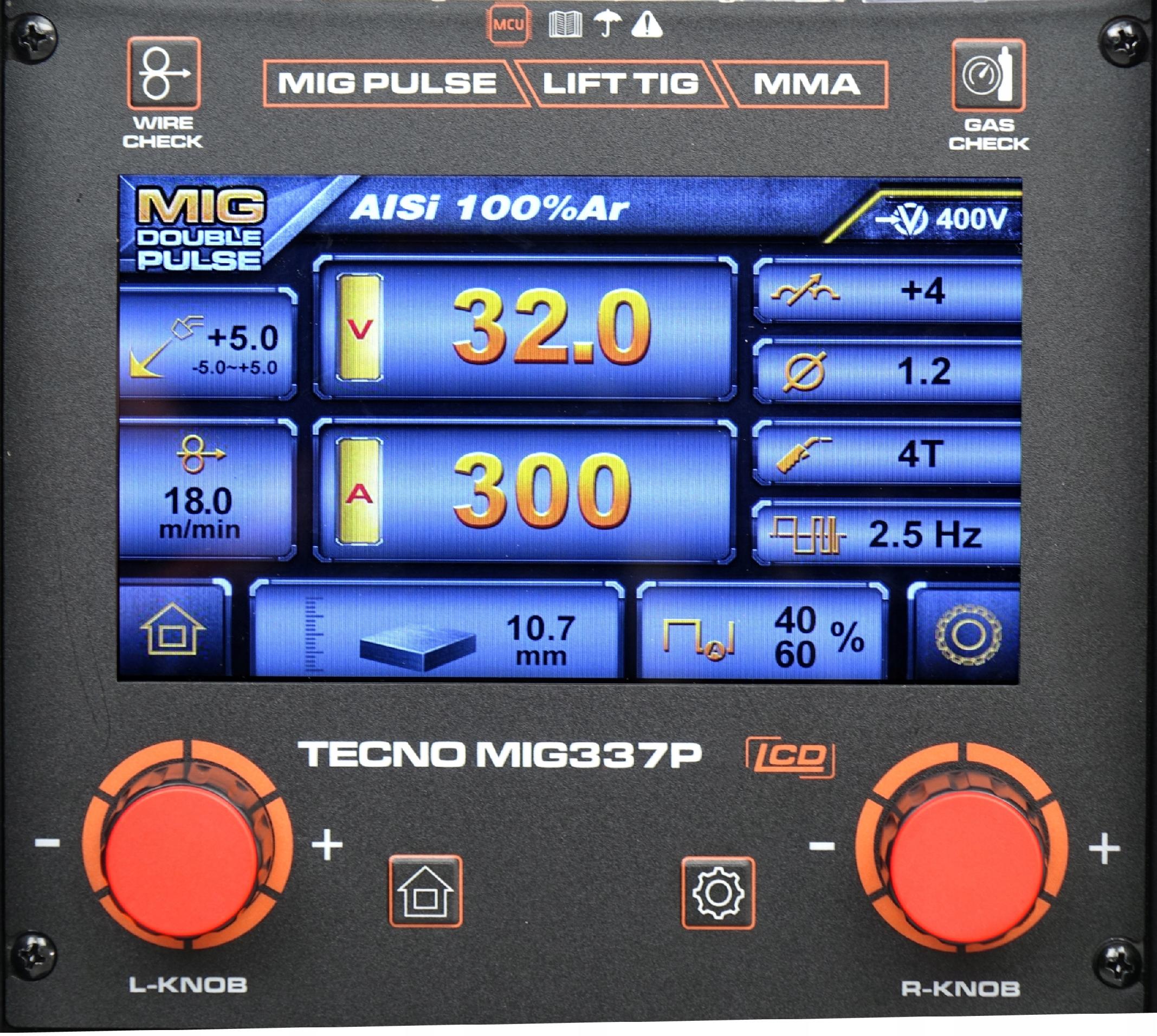 IDEAL TECNO MIG 337 PULSE SYNERGIC LCD posiada czytelny i łatwy w obsłudze panel funkcyjny, który posiada m.in.: