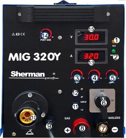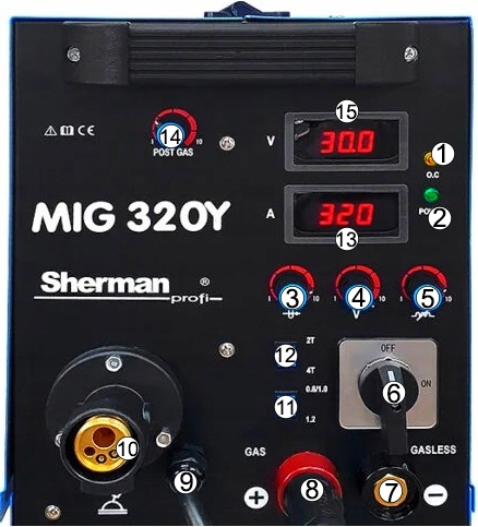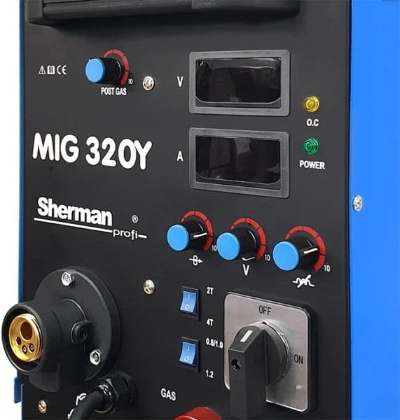 SHERMAN MIG 320Y/4R posiada czytelny i łatwy w obsłudze panel funkcyjny, który posiada m.in.: