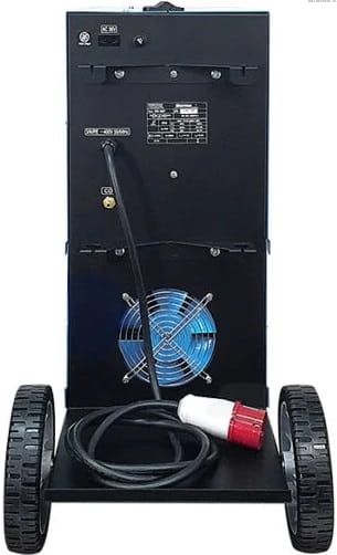 ✔️ PODWOZIE JEZDNE - Półautomat zaopatrzono także w solidne podwozie jezdne, wyposażone wytrzymałe, łożyskowane kółka które gwarantują dużą mobilność i dają możliwość przemieszczania spawarki po nierównym podłożu.