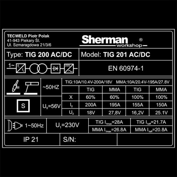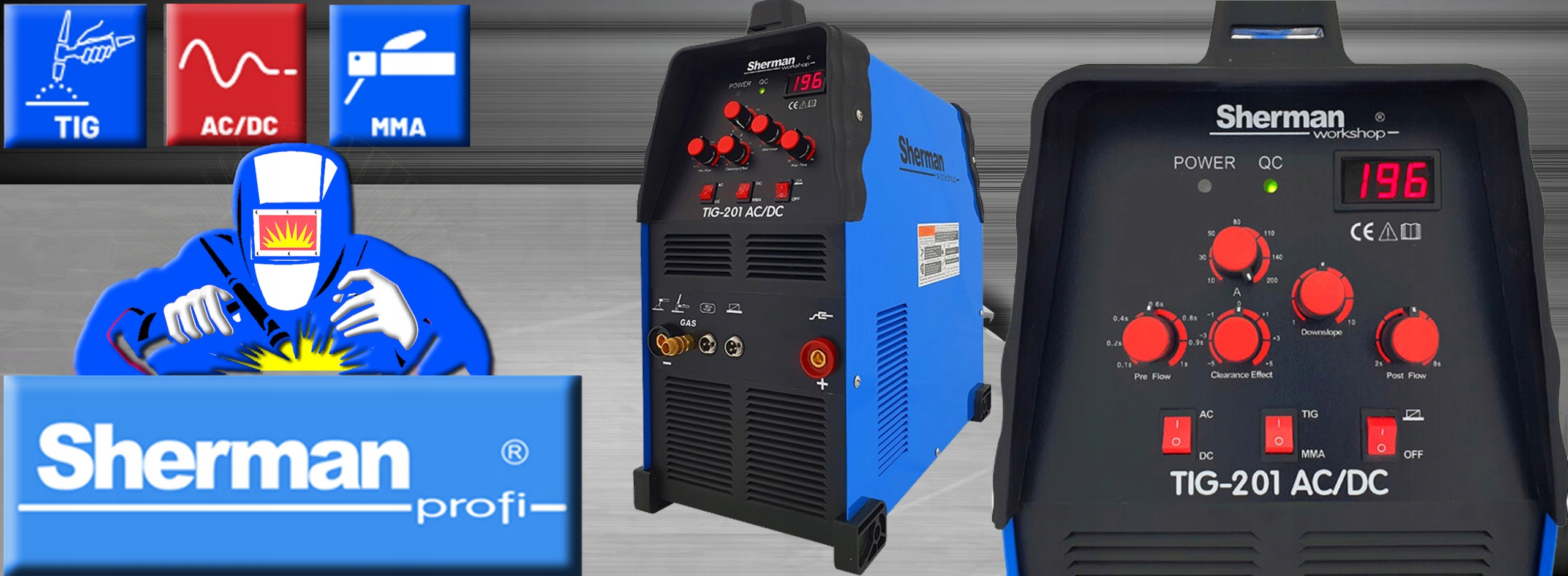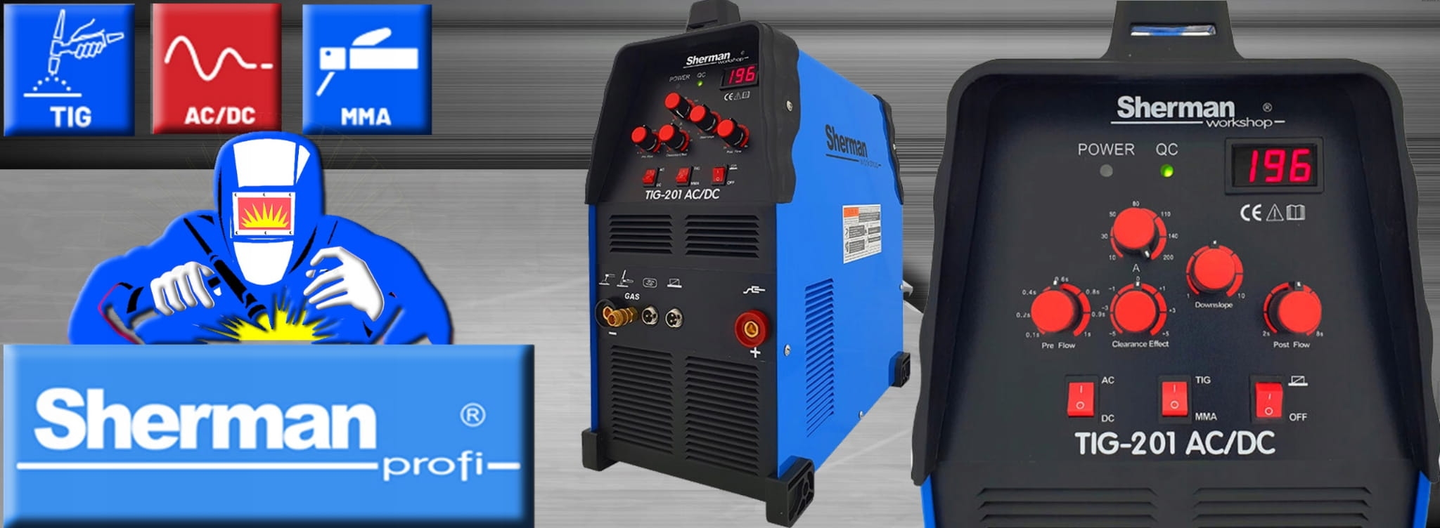 SPAWARKA INWERTOROWA TIG HF DO ALUMINIUM SHERMAN TIG 201 AC/DC 230A 200A