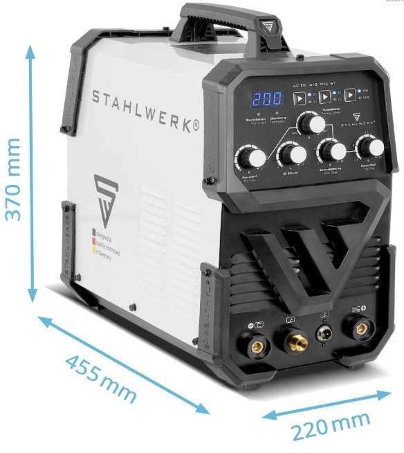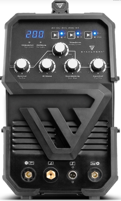 STAHLWERK AC/DC TIG 200 ST to profesjonalna spawarka inwertorowa w nowoczesnym wydaniu. Umożliwia spawanie prądem o natężeniu do 200A. Zasilana jest z sieci jednofazowej 230V. Spawarka posiada: