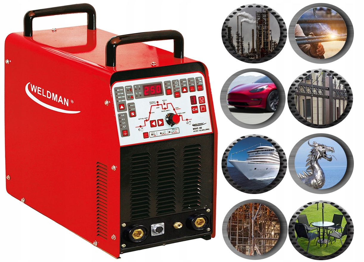 BRAVO TIG 250 firmy WELDMAN jest urządzeniem o szerokim wachlarzu zastosowań, zaprojektowane, jako inwertorowe źródło prądu umożliwiające spawanie metodą :