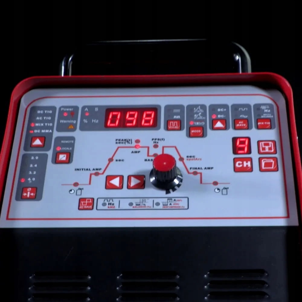 Panel funkcyjny umożliwia precyzyjną kontrolę wszystkich najważniejszych parametrów spawania;