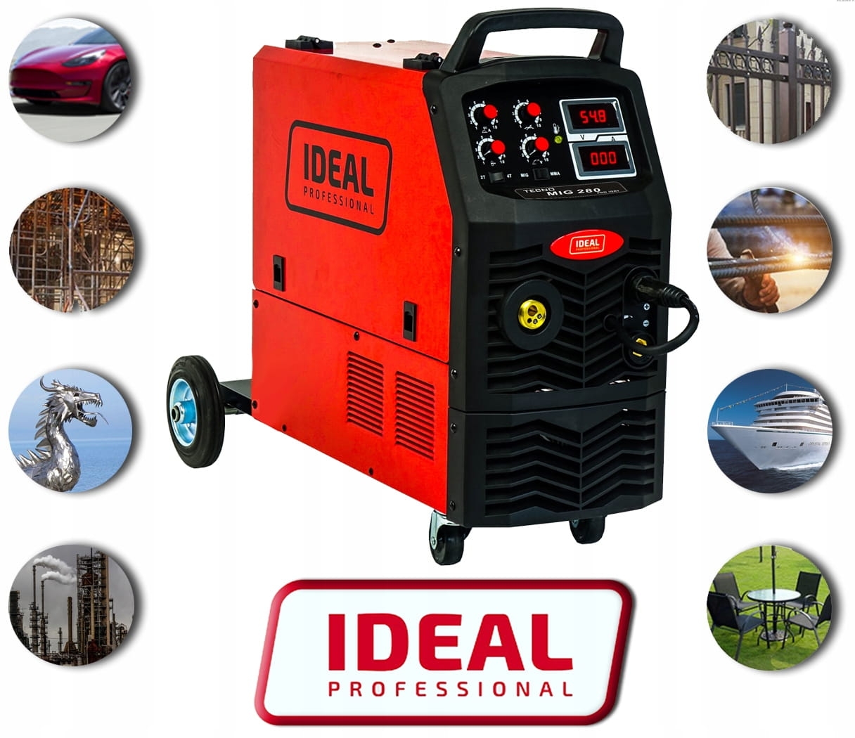 IDEAL TECNO MIG 280 znajduje zastosowanie w wielu branżach przemysłowych, takich jak motoryzacyjna, maszynowa, stoczniowa, budowlana, a także w warsztatach naprawczych i przemyśle metalowym.