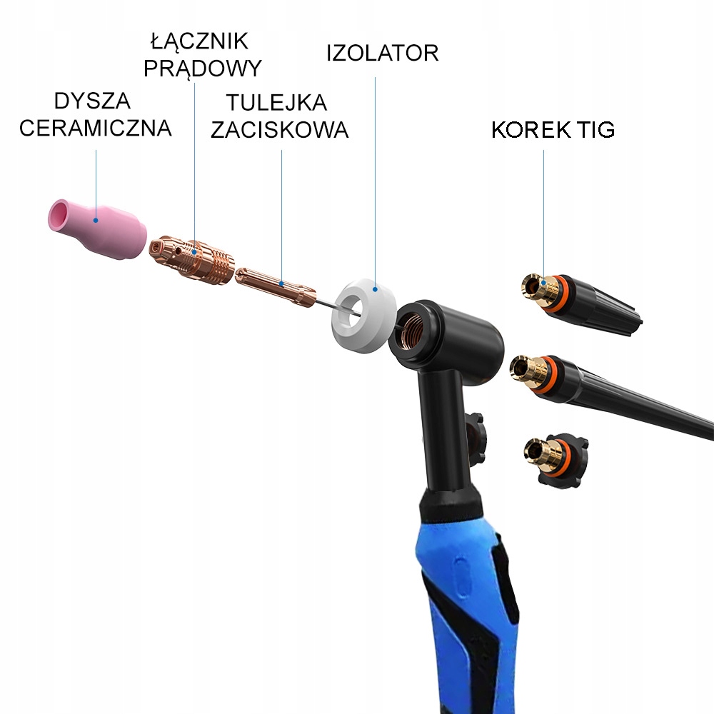 Uniwersalny, solidny uchwyt / palnik spawalniczy TIG-WP-26 lub pod inną nazwą SR26) pasuje do większości urządzeń spawalniczych dostępnych na rynku.
