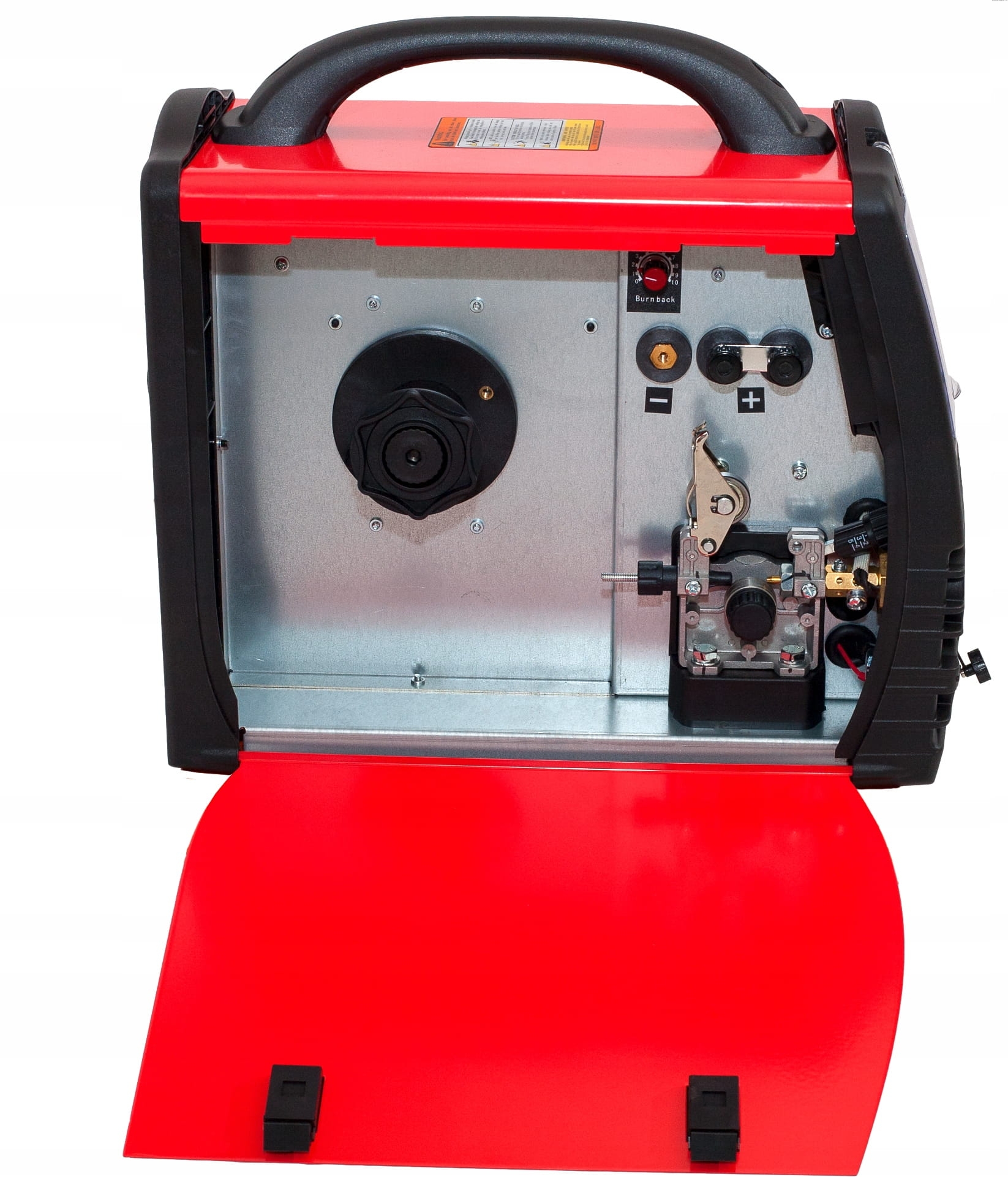 Urządzenie posiada możliwość zmiany biegunowości spawania we wnętrzu urządzenia oraz pokrętło Burn-back.