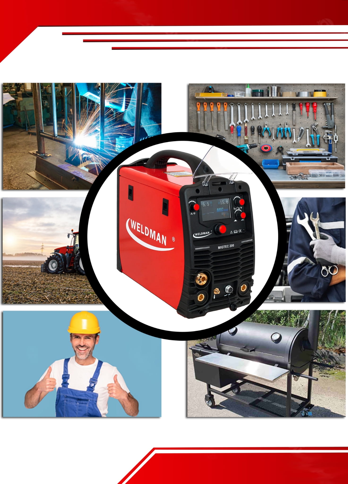 Migomat firmy WELDMAN jest urządzeniem o szerokim wachlarzu zastosowań, zaprojektowane, jako inwertorowe źródło prądu umożliwiające spawanie drutem topliwym w osłonie gazowej MIG/MAG lub FCAW drut samoosłonowy (po zmianie biegunowości), spawanie elektrodą otulinową MMA, a także metodą TIG Lift