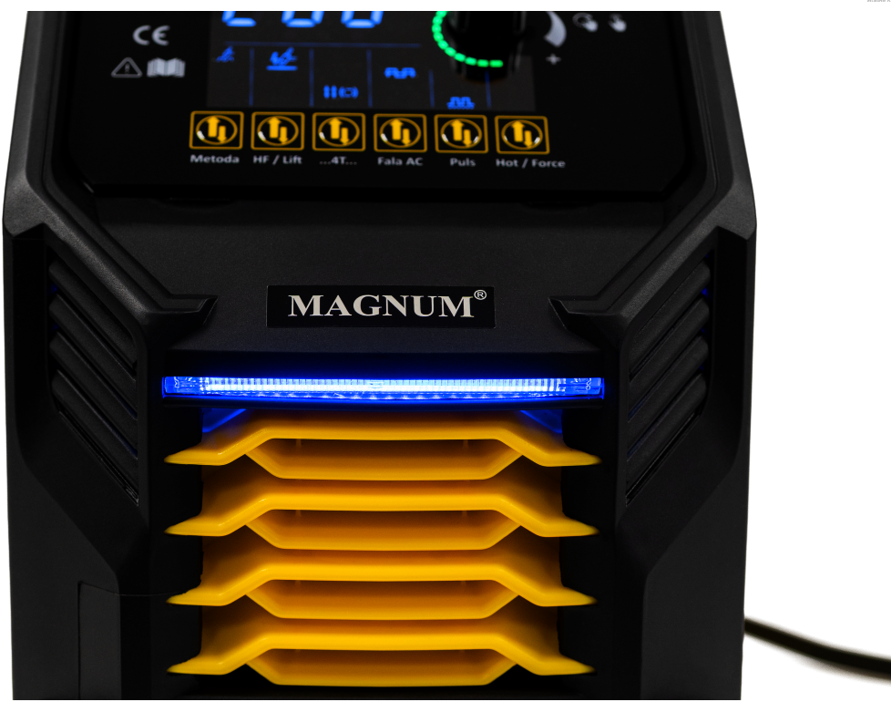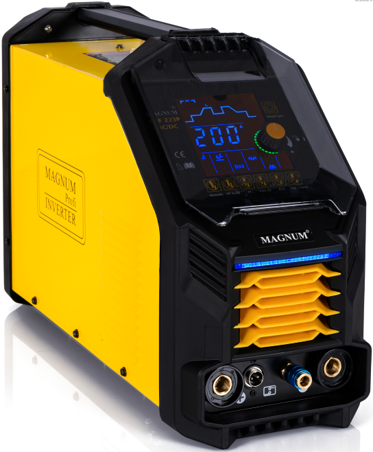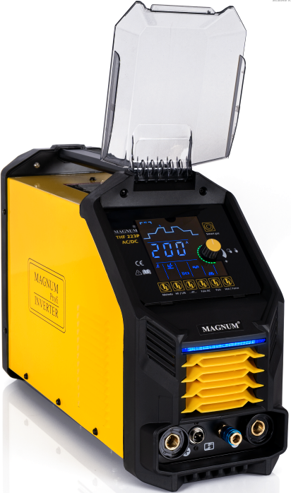 MAGNUM THF 223P AC/DC to profesjonalna spawarka inwertorowa w nowoczesnym wydaniu. Umożliwia spawanie prądem o natężeniu do 200A. Zasilana jest z sieci jednofazowej 230V. Spawarka posiada: