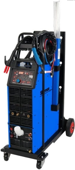to profesjonalna spawarka inwertorowa w nowoczesnym wydaniu. Umożliwia spawanie prądem o natężeniu do 315A. Zasilana jest z sieci trójfazowej 400V. Spawarka posiada: