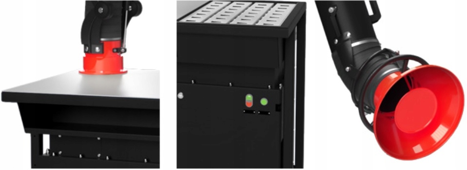 ⭐ Elastyczność w regulacji i zastosowaniu - Stół oferuje swobodną regulację przepływu między odciągami za pomocą przepustnic w ramieniu i w stole, co pozwala na dostosowanie efektywności odciągu do bieżących potrzeb.