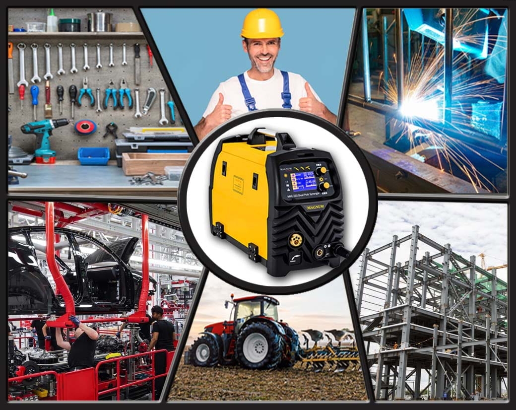 Urządzenie zostało zaprojektowane do wszelkiego rodzaju prac spawalniczych w warsztatach samochodowych, ślusarskich, warsztatach naprawczych, przemysłowych, fabrykach itp.