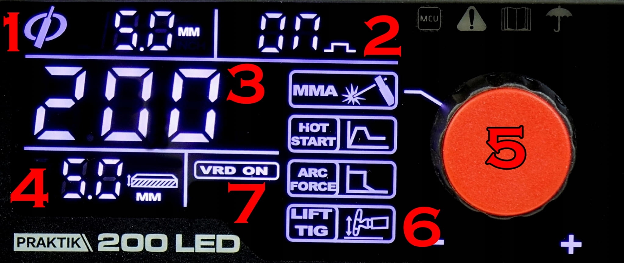 ⭐ VRD - to system redukcji napięcia, którego zadaniem jest wyłączenie zasilania w ciągu kilku milisekund po skończeniu spawania. Funkcja ta odpowiada także za redukcję napięcia na elektrodzie otulonej do bezpiecznego poziomu.