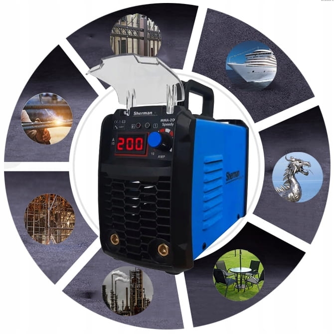 SHERMAN MMA 200 SPEEDY - To spawarka wykorzystująca najbardziej zaawansowana technologię inwertorową. Spawarka posiada zasilanie na 230V, która umożliwia spawanie metodą: