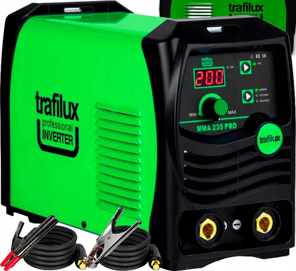 TRAFILUX MMA 235 PRO - To przenośna spawarka wykorzystująca najbardziej zaawansowana technologię inwertorową IGBT. Urządzenie posiada zasilanie 230V. Spawarka nie jest wyposażone we wtyczkę zasilania.