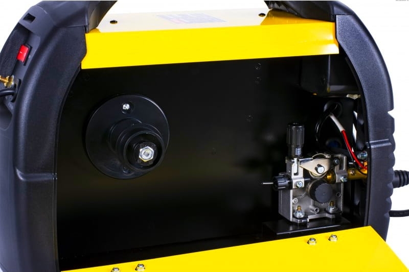 Spawarka została wyposażona w profesjonalny podajnik drutu, który gwarantuje stabilność i ciągłość pracy urządzenia. 4-rolkowy podajnik umożliwia precyzyjny wysuw drutu spawalniczego wykluczając jego poślizg. Podajnik posiada pokrętło szybkiej wymiany drutu jak i rolki podającej drut.