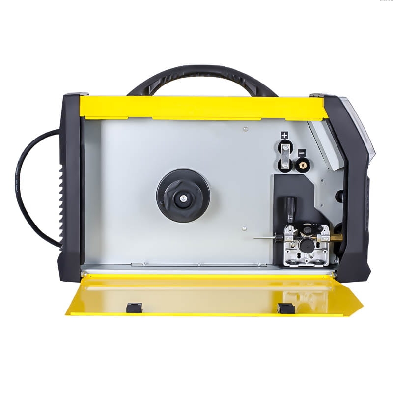 Spawarka została wyposażona w profesjonalny podajnik drutu, który gwarantuje stabilność i ciągłość pracy urządzenia. 2-rolkowy podajnik umożliwia precyzyjny wysuw drutu spawalniczego wykluczając jego poślizg. Urządzenie posiada układ chłodzenia 2 wentylatorami co zdecydowanie zwiększa jego wydajność. Urządzenie wyposażone jest w zabezpieczenie przeciw przeciążeniu, co zwiększa jego niezawodność.