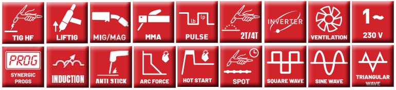 ✅ PULS - funkcje spawania synergicznego z pulsem, dzięki czemu możliwe jest uzyskanie wysokiej jakości spoiny przy spawaniu wszelkich spawalnych materiałów, zwłaszcza wykonanych ze stali nierdzewnej