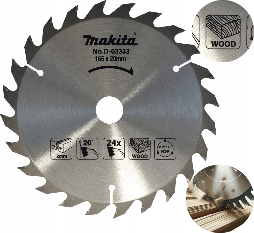 TARCZA DO PIŁY DO DREWNA MAKITA D-03333 T.C.T. 165x20mm 24T 24 ZĘBY WIDIOWA