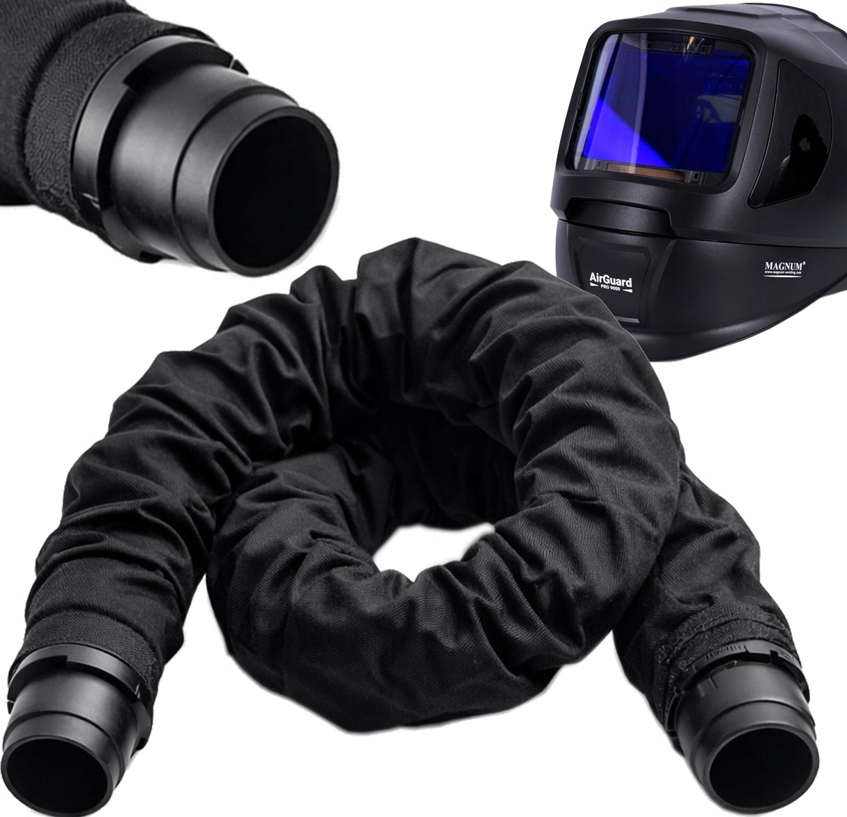 ✅ Wąż oddechowy z osłoną do przyłbicy z nawiewem powietrza marki MAGNUM AIRGUARD PRO 9000 służy do połączenia modułu filtrującego powietrze z kanałem powietrznym umieszczonym w nagłowiu przyłbicy.