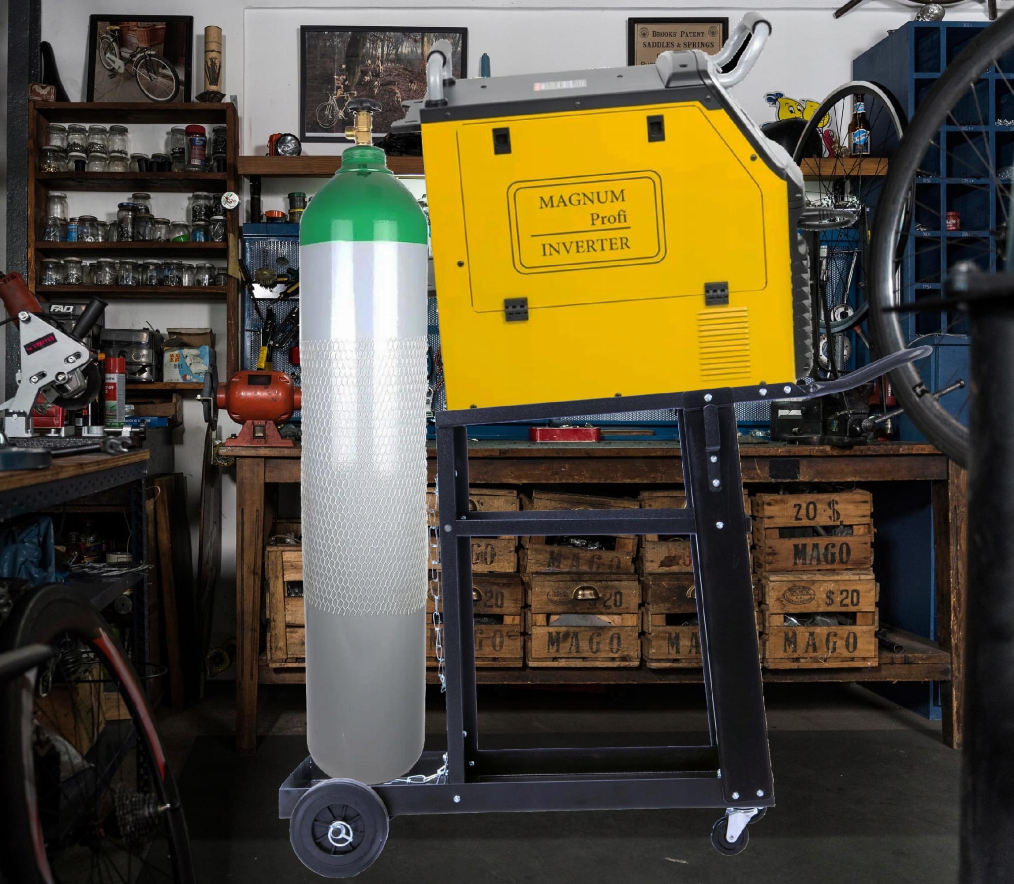 Na wózku można wygodnie ustawić większość kompaktowych migomatów i spawarek inwertorowych marki MAGNUM, szczególnie modeli o wadze do ok. 20 kg i szerokości mieszczącej się na górnej półce.