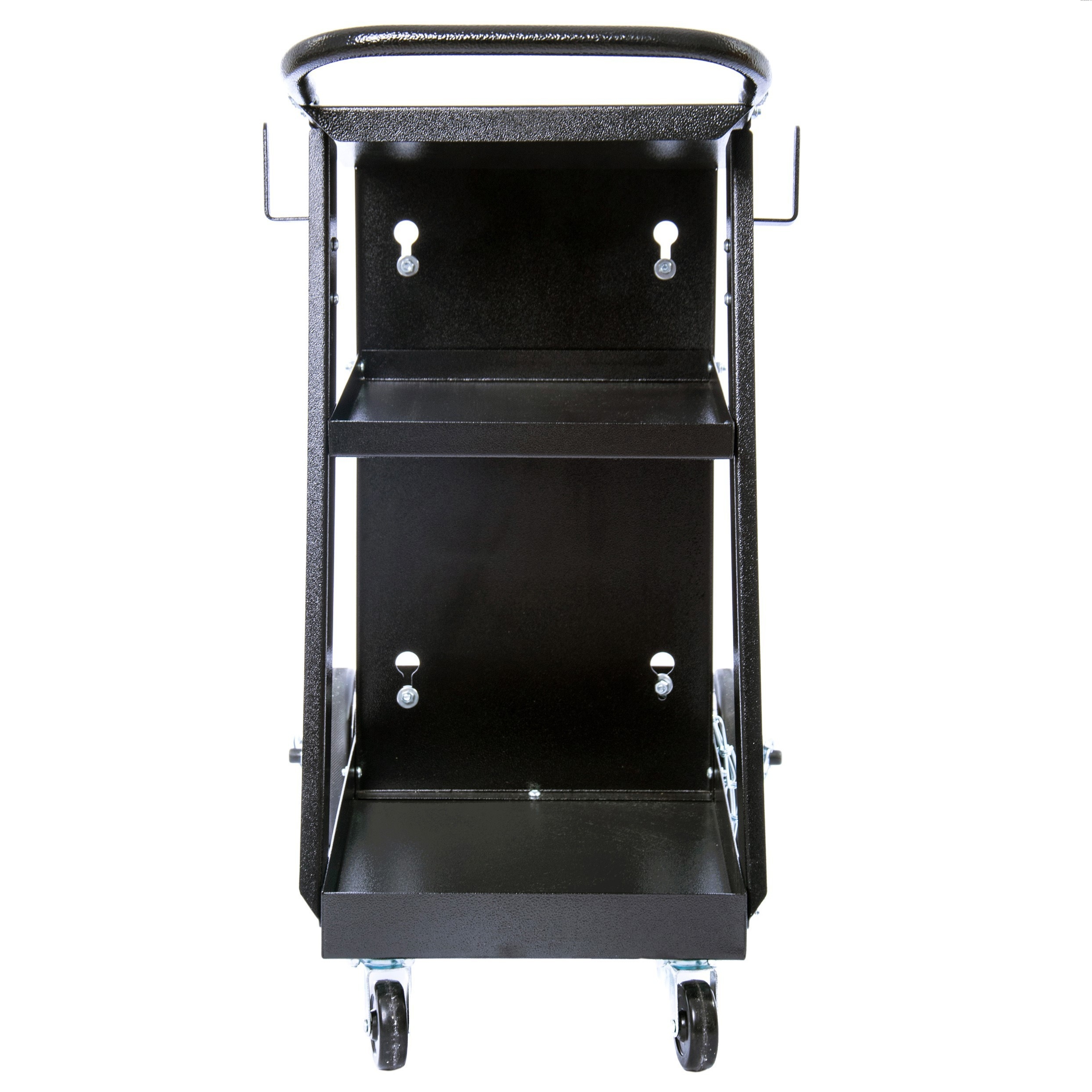 - Dwie dolne półki zapewniają miejsce na akcesoria, przewody, elektrody czy drut spawalniczy.