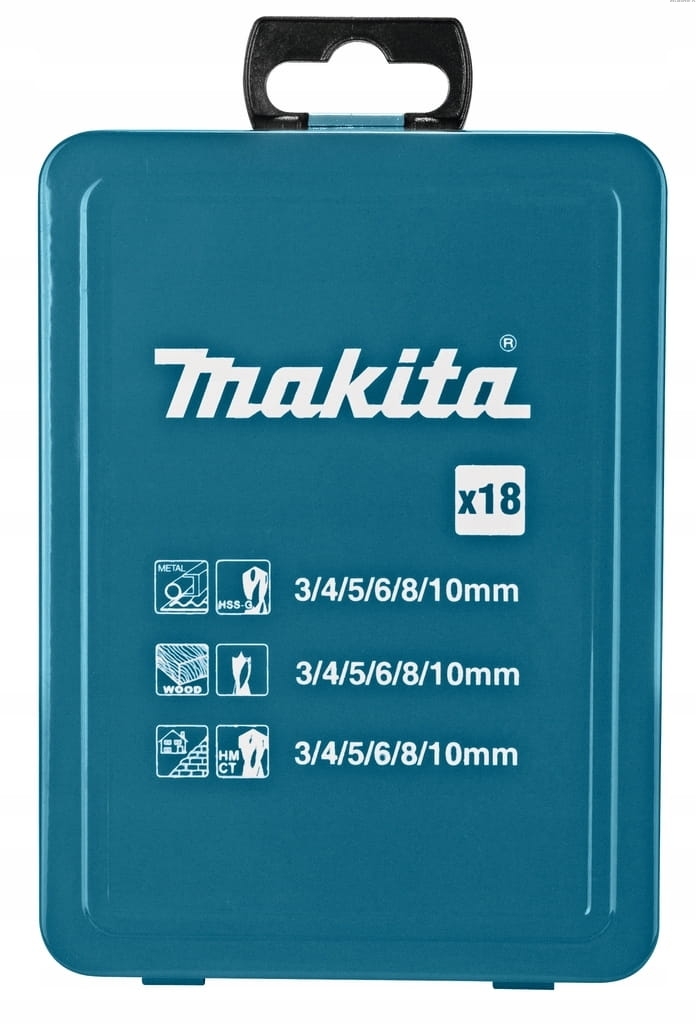 Zestaw Wierteł, 18 sztuk 3-10 mm MAKITA D-46202 DREWNO BETON METAL